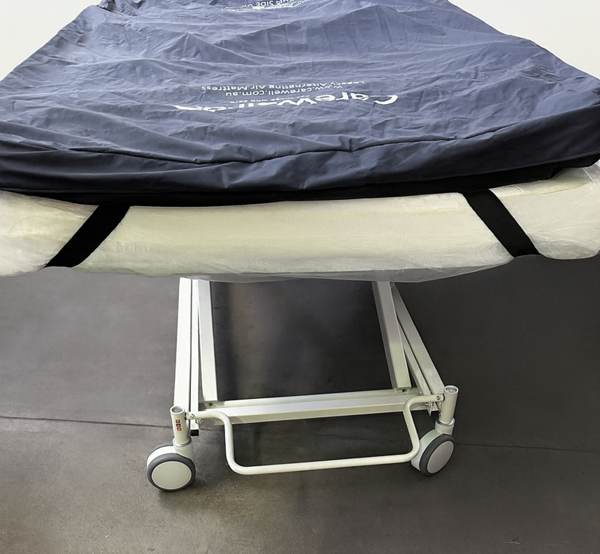 To ensure the Legacy Air mattress range (including Overlays) don't slip on the bed or mattress surface beneath, attach the straps to the corners of the mattress & bed as below.