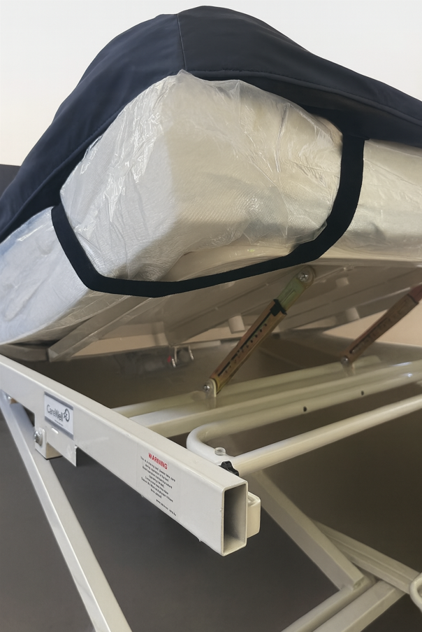 Pictured - Legacy 10/15 Air Overlay attached to a foam mattress and bed: